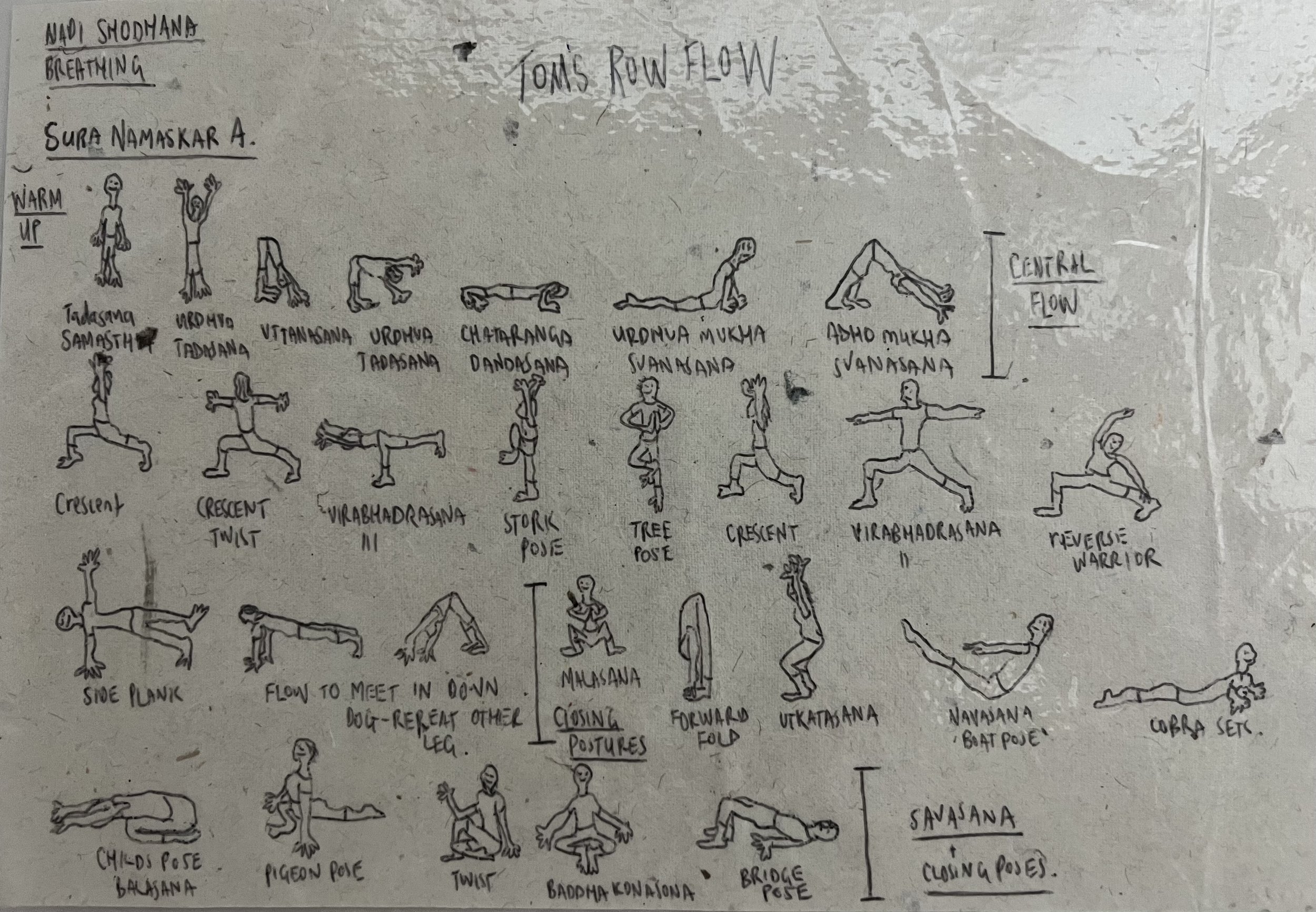 A dear friend and accomplished yoga instructor, April, was kind enough to design for me a personalised flow, known simply as ‘TOM’S ROW FLOW’. Although not a rower herself, April did plenty of research and put together a comprehensive flow aimed at strengthening and improving the parts of the body used when sliding seat rowing.
