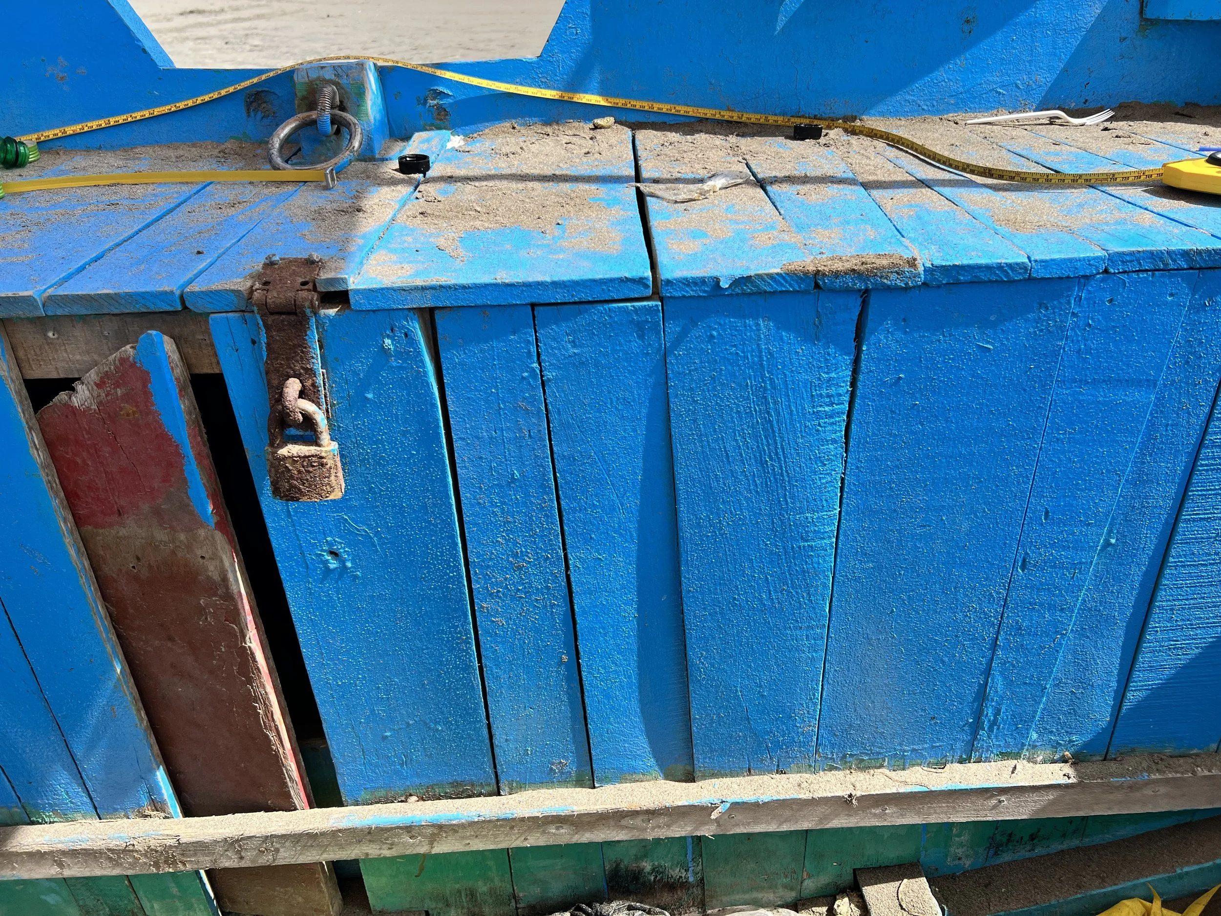The storage compartments are nice to look at, being constructed in a perfectly practical manner. I’m still yet to see any plywood on these boats, so solid timber is used to clad these large, flat surfaces. Where I’m from we’d use tongue and groove boards, all of equal width. Here they use miss-match planks, some wide, most narrow, some tapered, some parallel, these I can only assume are offcuts from the planking process, a perfectly good use of left-over timber that would otherwise be scrap, burnt under the steam box.