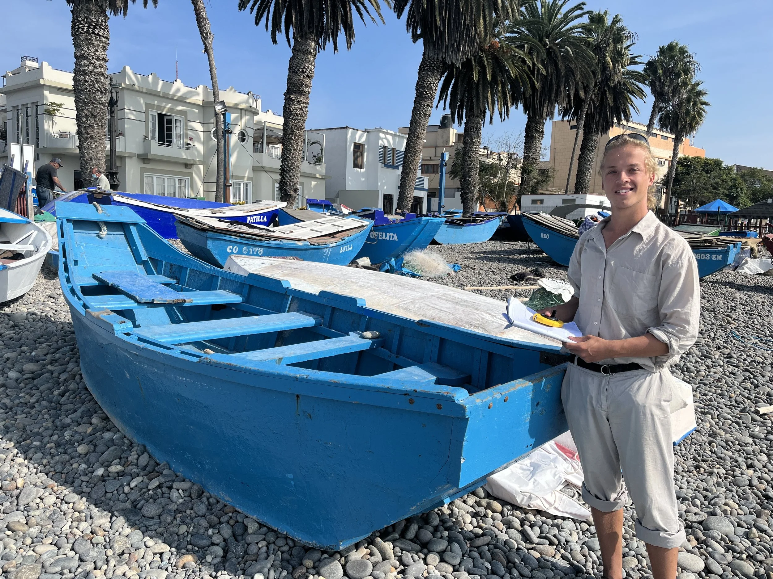 I went down to the beach on Monday morning. I had a bag full to the brim with two hamburgers, camera and accessories, tape measure, steel rule and of course, a notepad and pen. Joaquin and I had roughly arranged to meet at 9 o’clock, when I arrived he was nowhere to be seen. The fishermen knew who I was looking for, Joaquin was at the dentist they told me, (that one was pretty easy to mime) perhaps he would be back in an hour…Not to worry I thought, plenty to look at here. Just as I was contemplating my next move, out popped Joaquin with a big grin on his face, showing off those pearly whites. I could only assume the appointment went well.