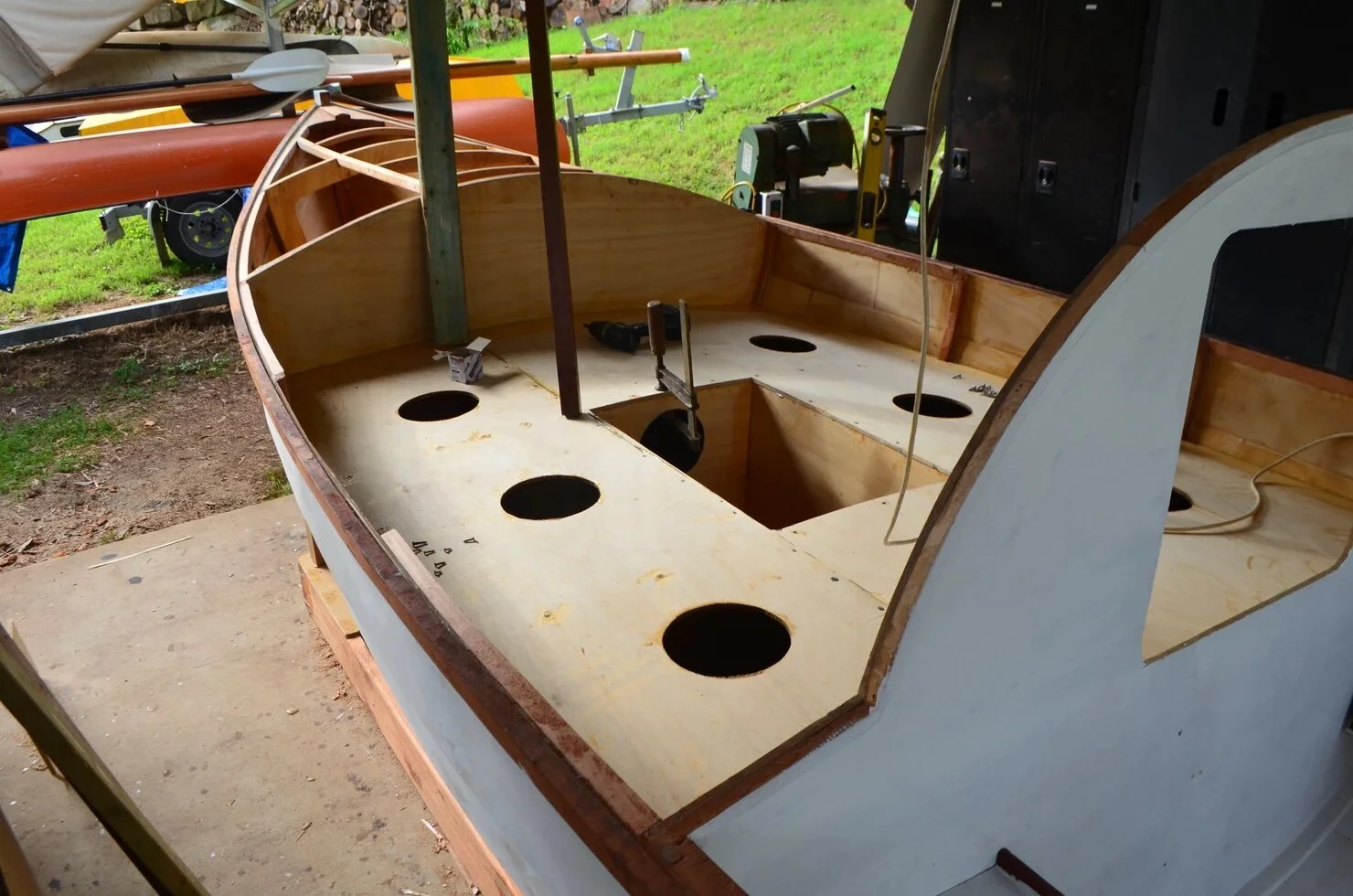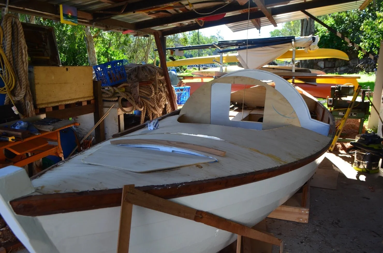 This week I've finished myriad small jobs, and a few big ones. The big milestone has been getting all the decks on, this includes the foredeck, middle deck/cockpit, the aft deck and side decks. Phew.