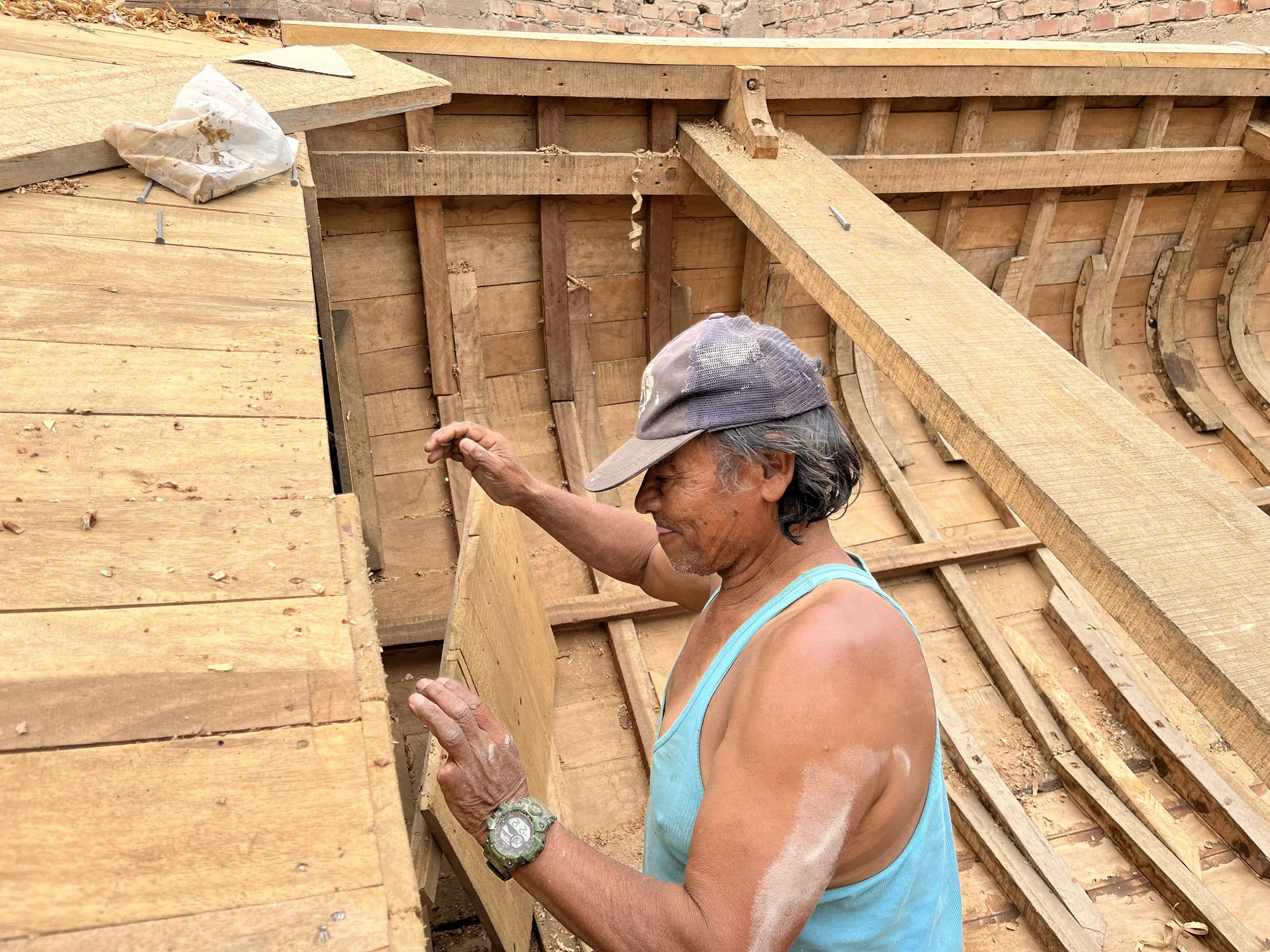 Now that we’ve learnt about the different types of Peruvian fishing craft, we’ll walk back up the hill and revisit the boatbuilders who are maintaining and renewing the fleet. Keep in mind, these men are not traditionalists, nor romantics, they are hardworking tradespeople, sweating each day to make a living, and a meagre one at that. Since my first visit to the boat yard, I have been back twice, unfortunately both times the boatbuilders were away. The store keeper next door informed me that they have gone down south for a month to work on a bigger boat, so my observations below are somewhat limited. Luckily, we’ll also get to visit another boatbuilder, a humble old man who lives further up the hill. He’s both a boatbuilder and a fisherman, and he’s just finished building a fine dinghy.